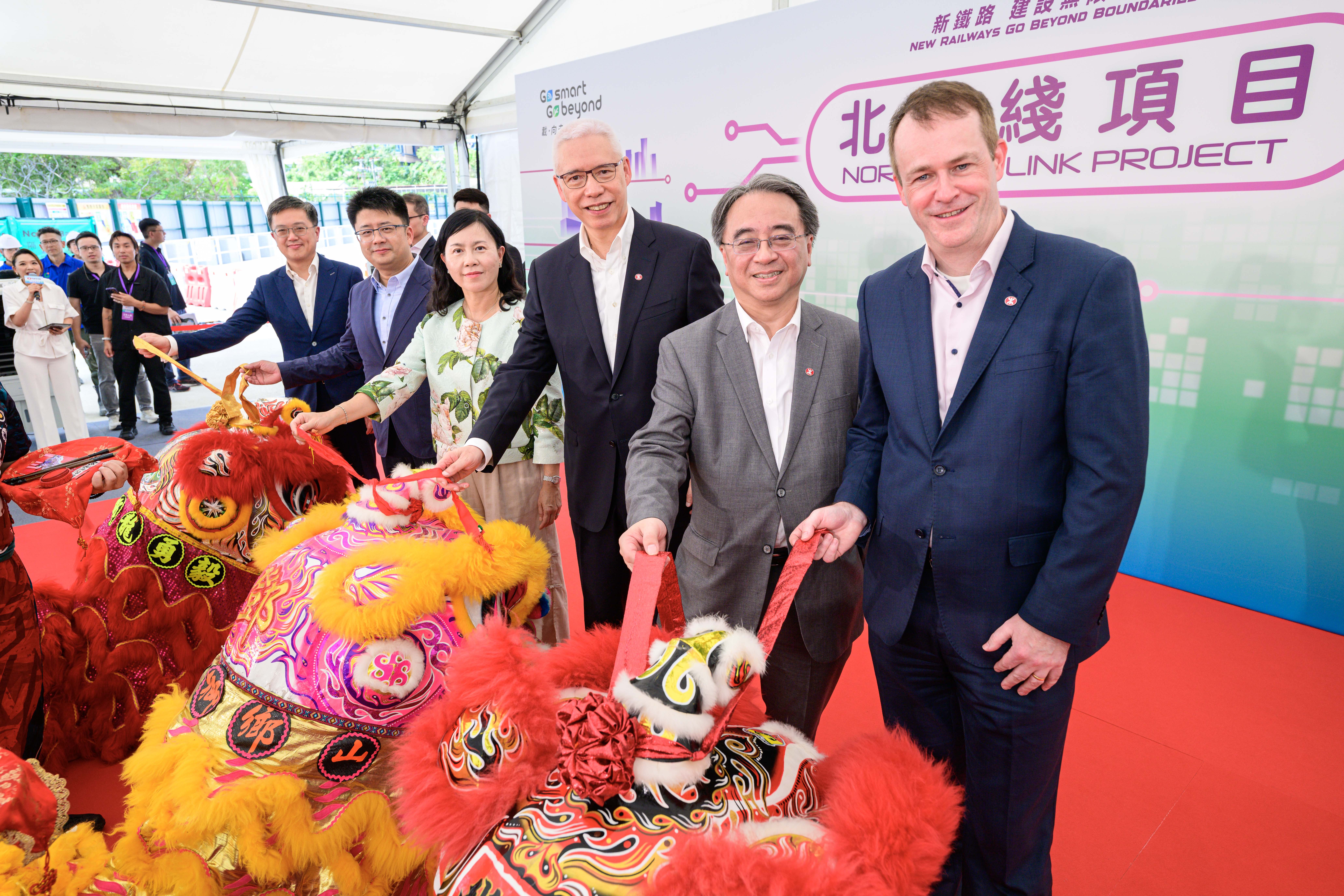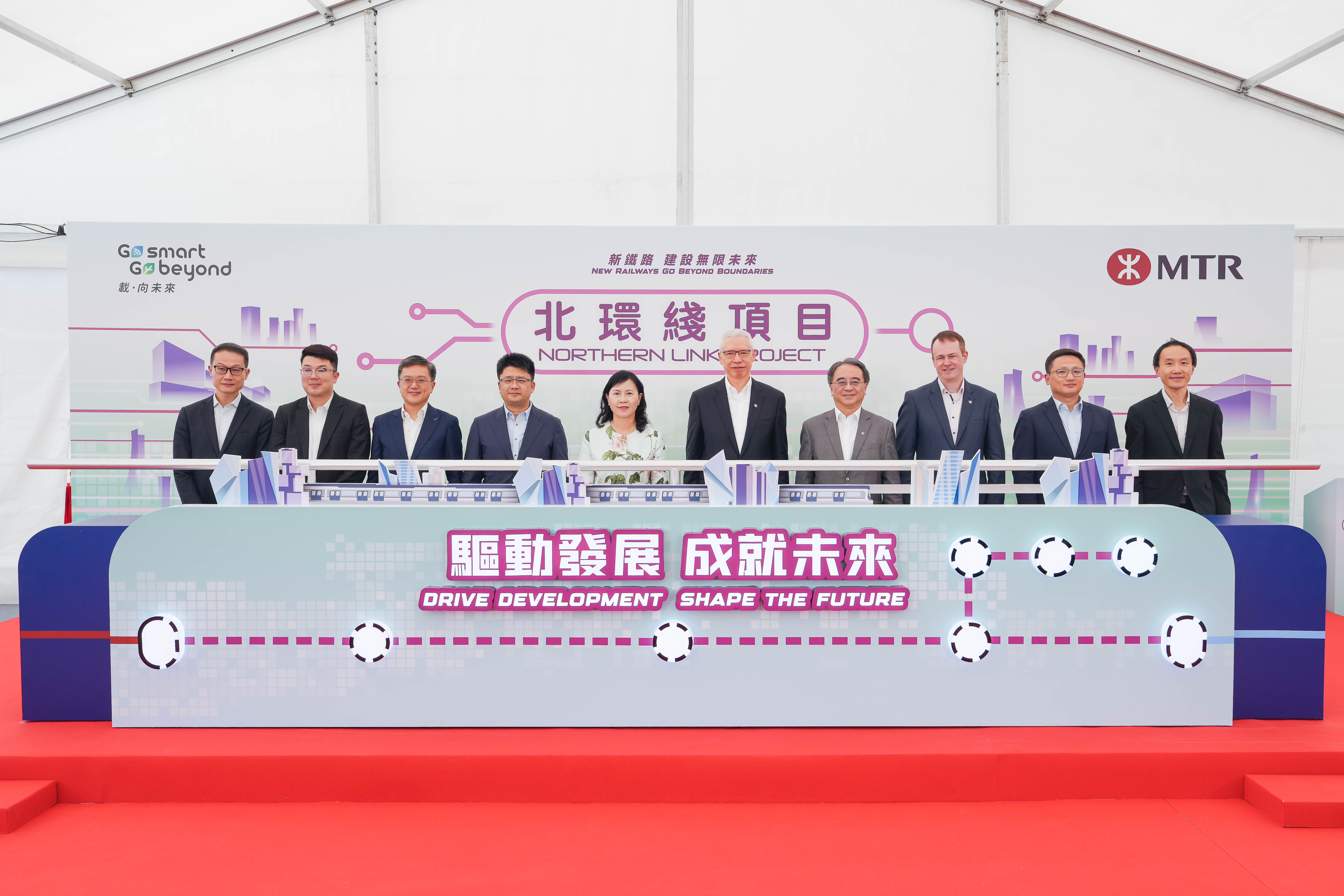 港鐵公司、運輸及物流局、中央政府駐港聯絡辦及立法會議員等代表出席儀式,見證北環綫項目進入新階段。