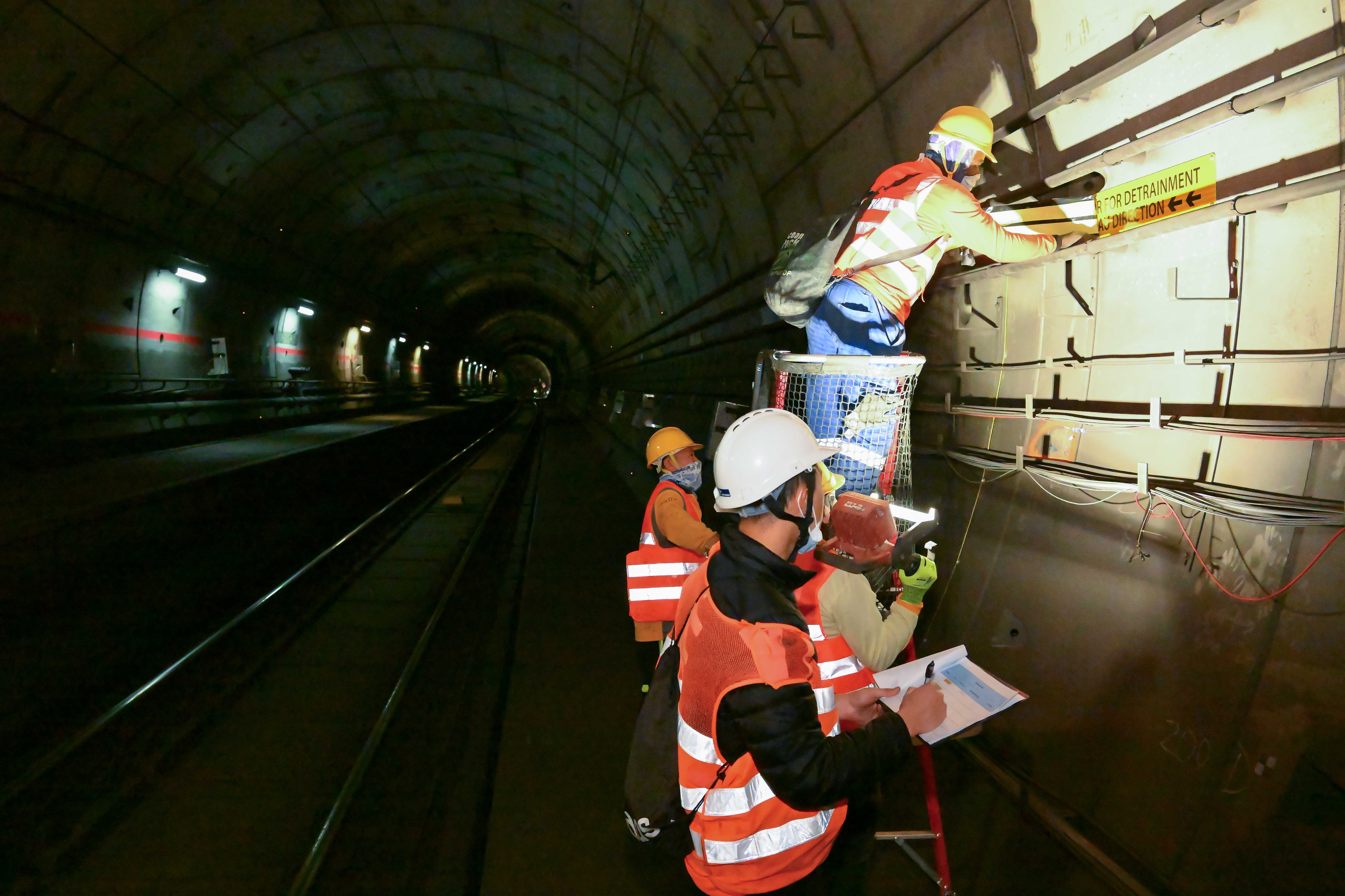 團隊繼續善用收車後的「黃金兩小時」,推進各項車站內部裝修及機電屋宇設備的安裝工作。
